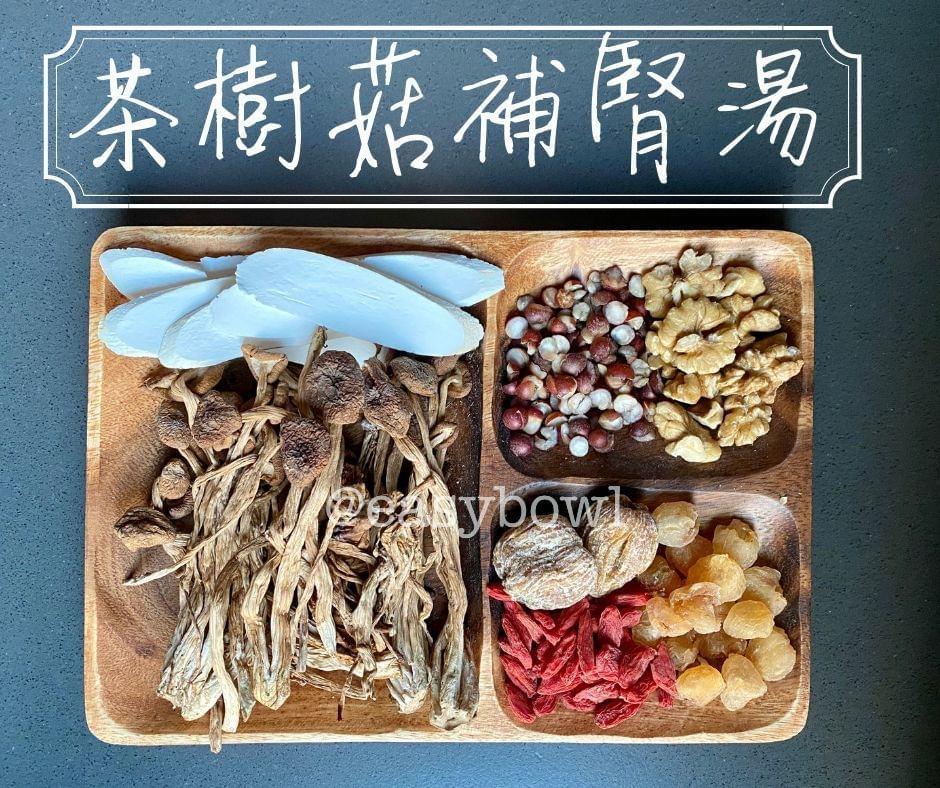茶樹菇、淮山、製茨實、蜜棗、杞子、合桃、元肉